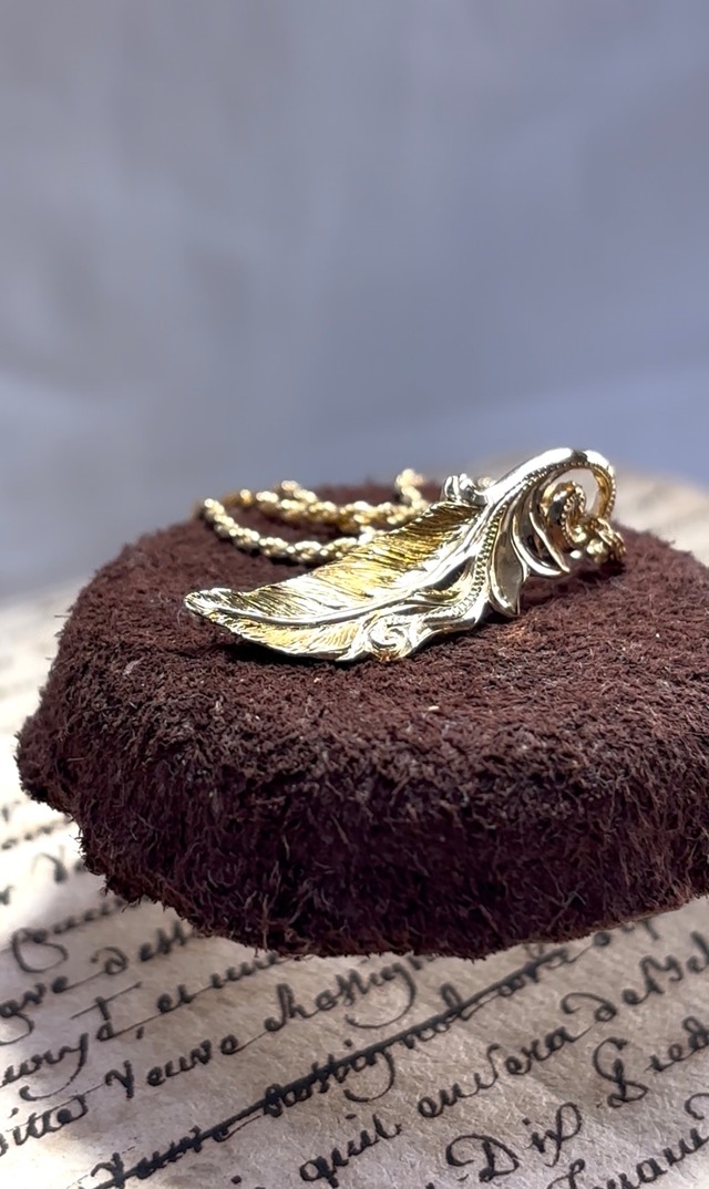 ■ハワイアンフェザーネックレス 心躍る軽やかな羽と伝統的なハワイアンモチーフであるトラディショナルスクロール(幸せを運んでくるハワイの波)を融合させ、胸元を華やかに彩ります。 お守りの様に日々着用いただけるよう、軽やかなデザインに仕上げております。 こちらの商品は変色を抑える為にゴールド(k18)コーティングを施しております。 また、一つ一つ手彫りで制作している為、 ペンダントトップ 約3.5cm チェーン 40センチcm シルバー925 18k GOLDメッキ