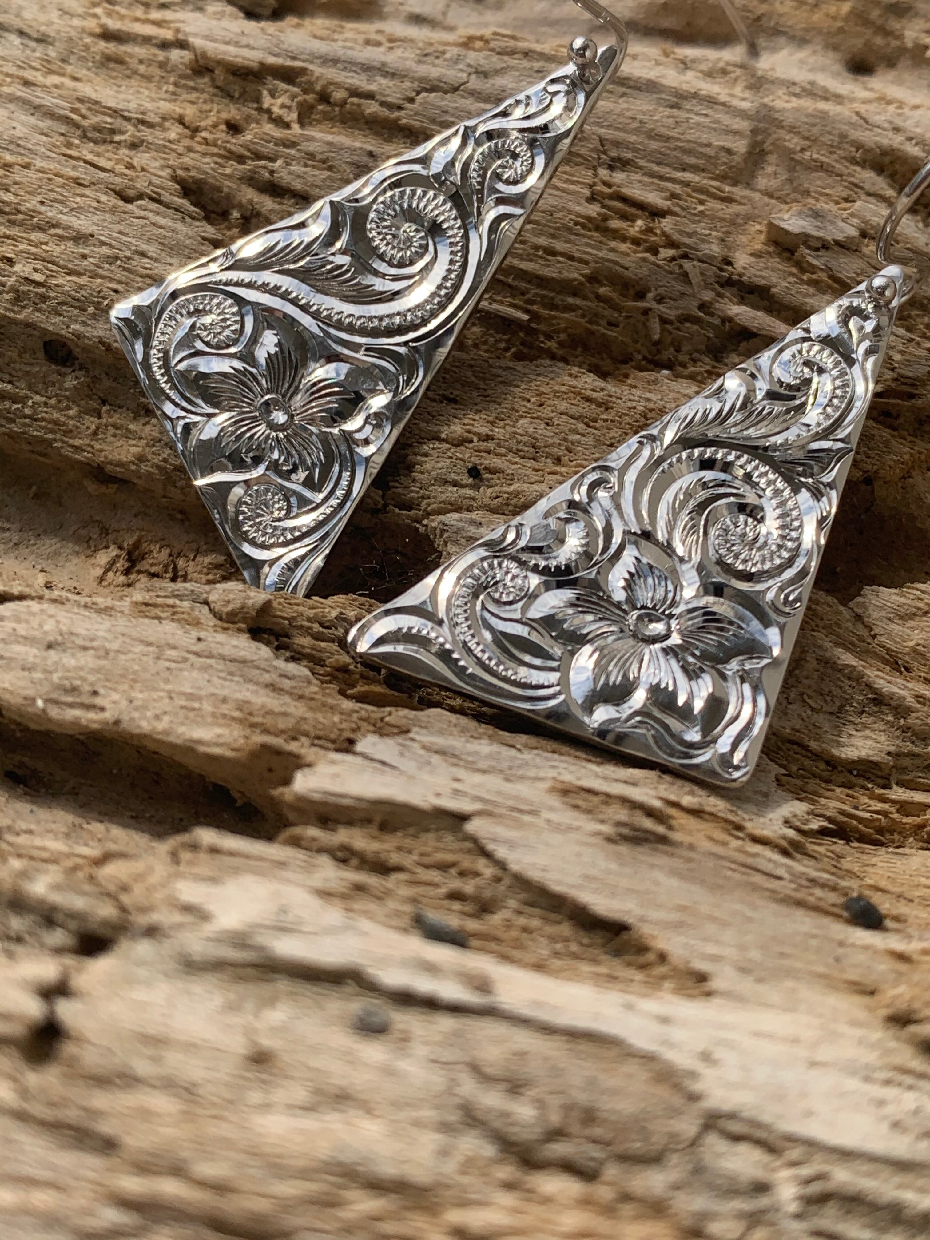 彫り柄はハワイアンでは定番のリーフスクロールですが、左右非対称にインスピレーション